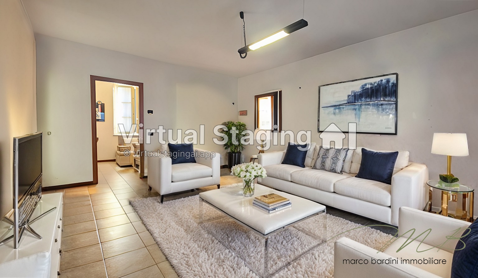 Per aiutarti a immaginare il potenziale di questa abitazione, abbiamo utilizzato il virtual home staging per modificare alcune immagini, in quanto l’appartamento è attualmente arredato come ufficio. Tali immagini hanno l’obiettivo di fornire una visione di come potrebbe diventare l’appartamento arredato come abitazione. Si precisa che queste rappresentazioni sono solo una bozza e non forniscono un risultato definitivo.