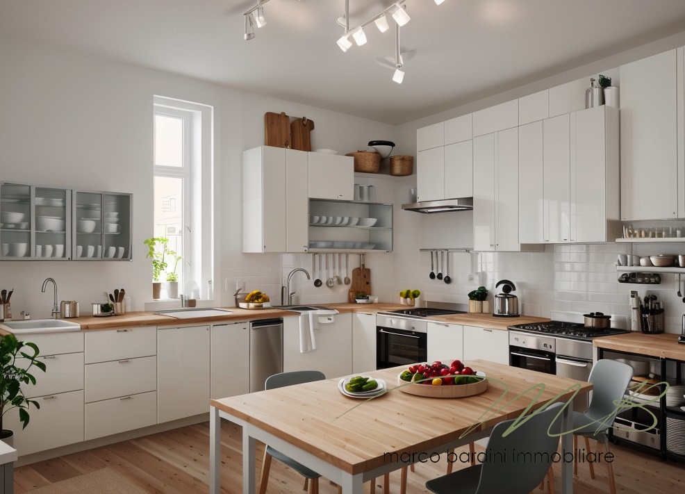 La cucina è abitabile, mentre le due camere da letto offrono ampio spazio per tutta la famiglia.