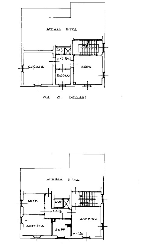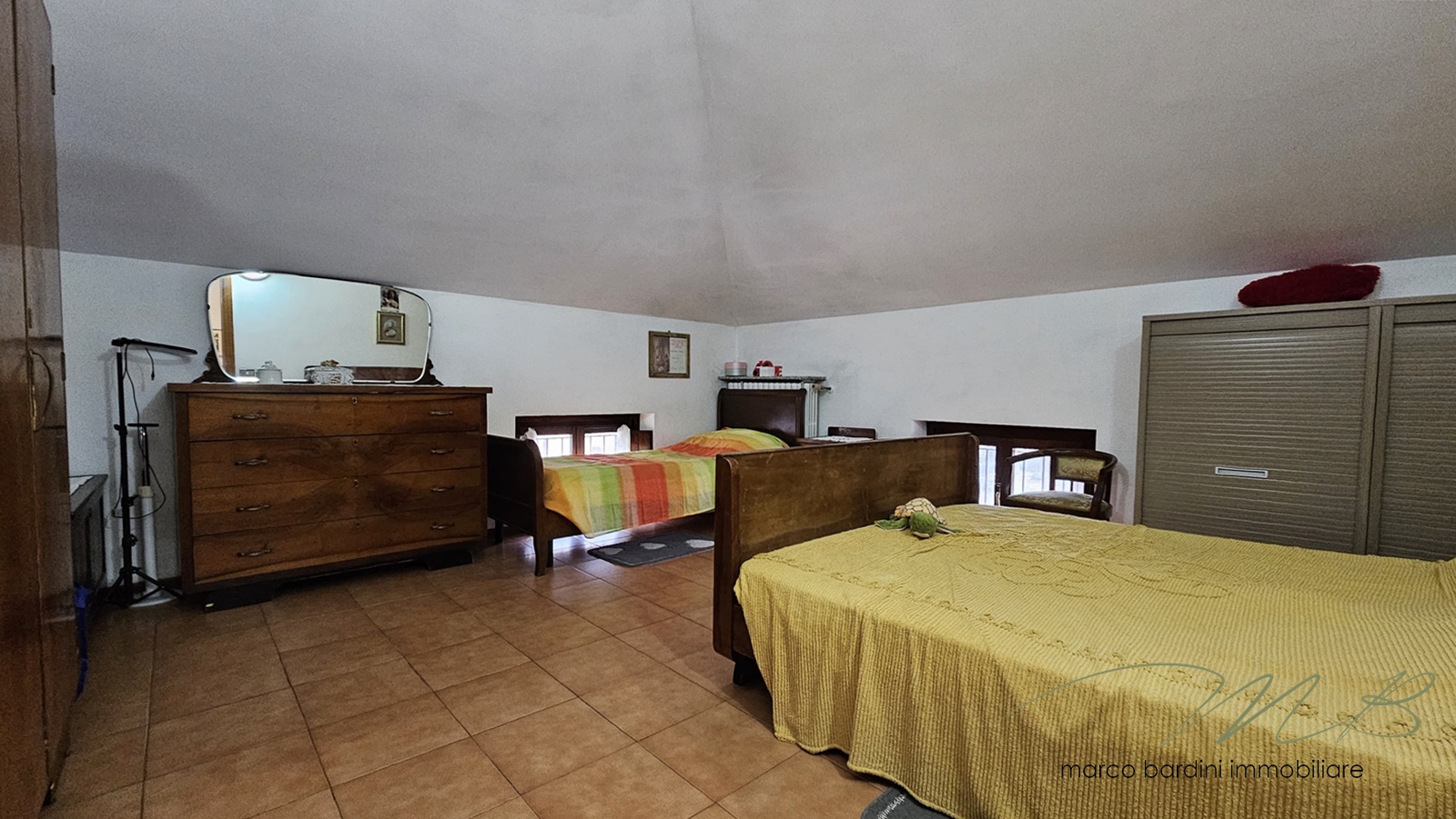 Il piano superiore, collegato internamente tramite ascensore privato, ospita tre camere da letto, un secondo ripostiglio e una lavanderia.