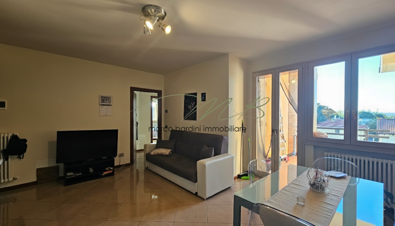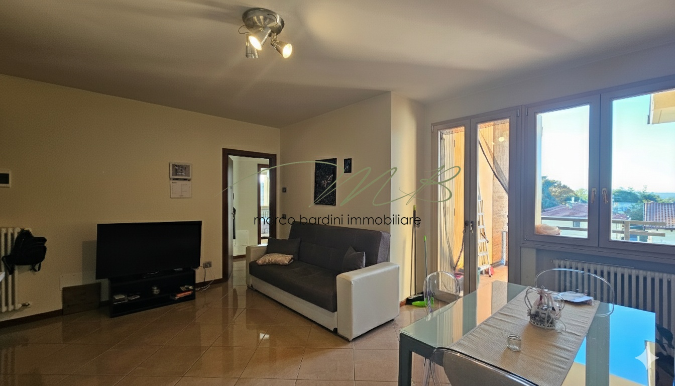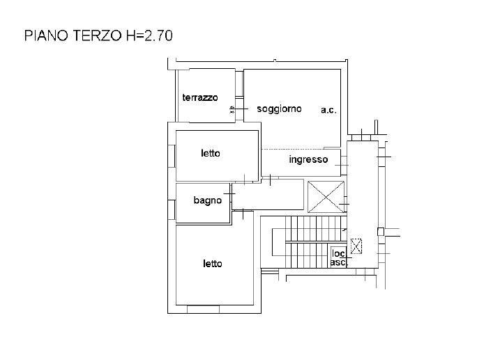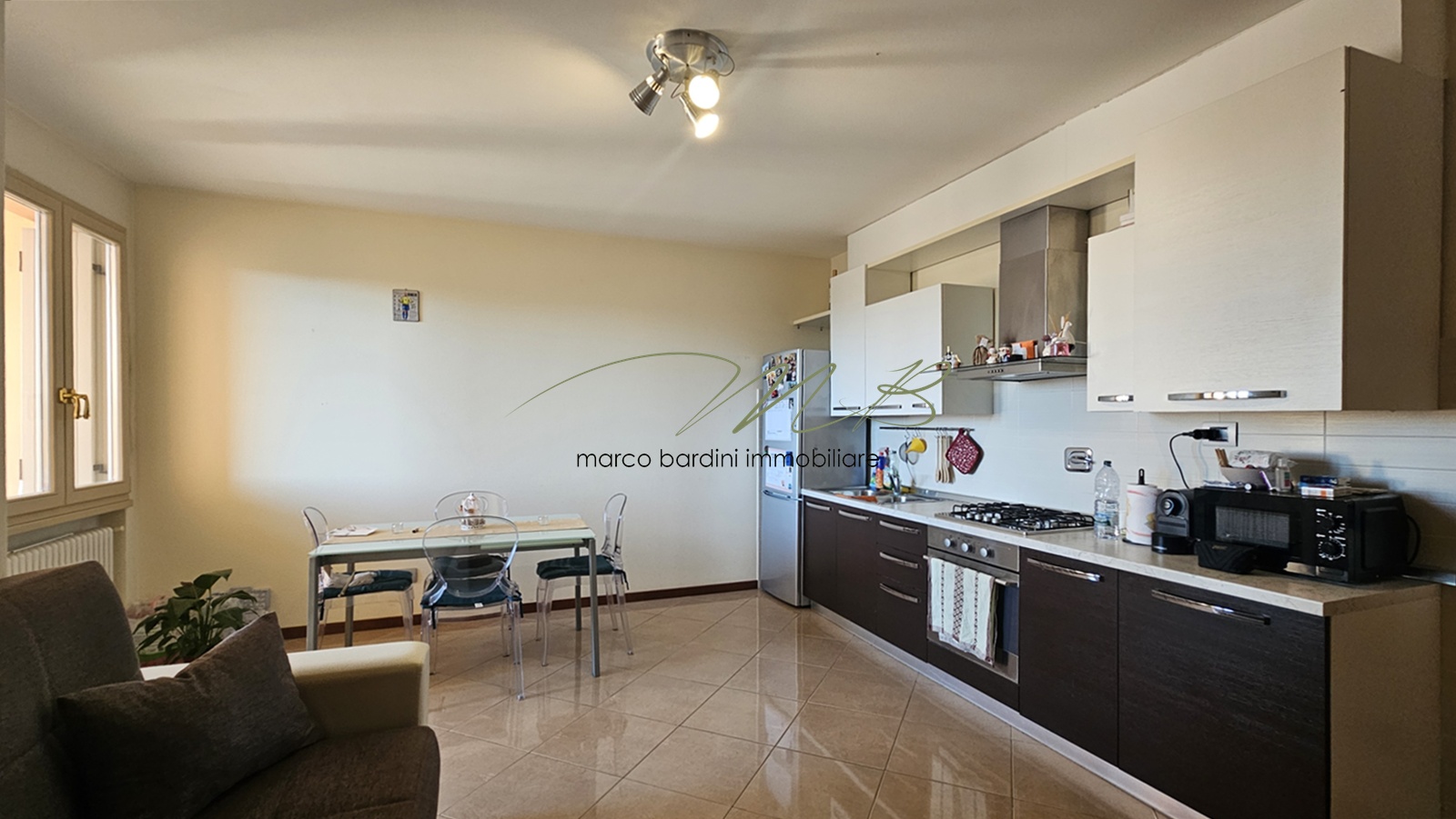 È composto da soggiorno con angolo cottura, loggia, disimpegno, camera matrimoniale, cameretta e bagno.