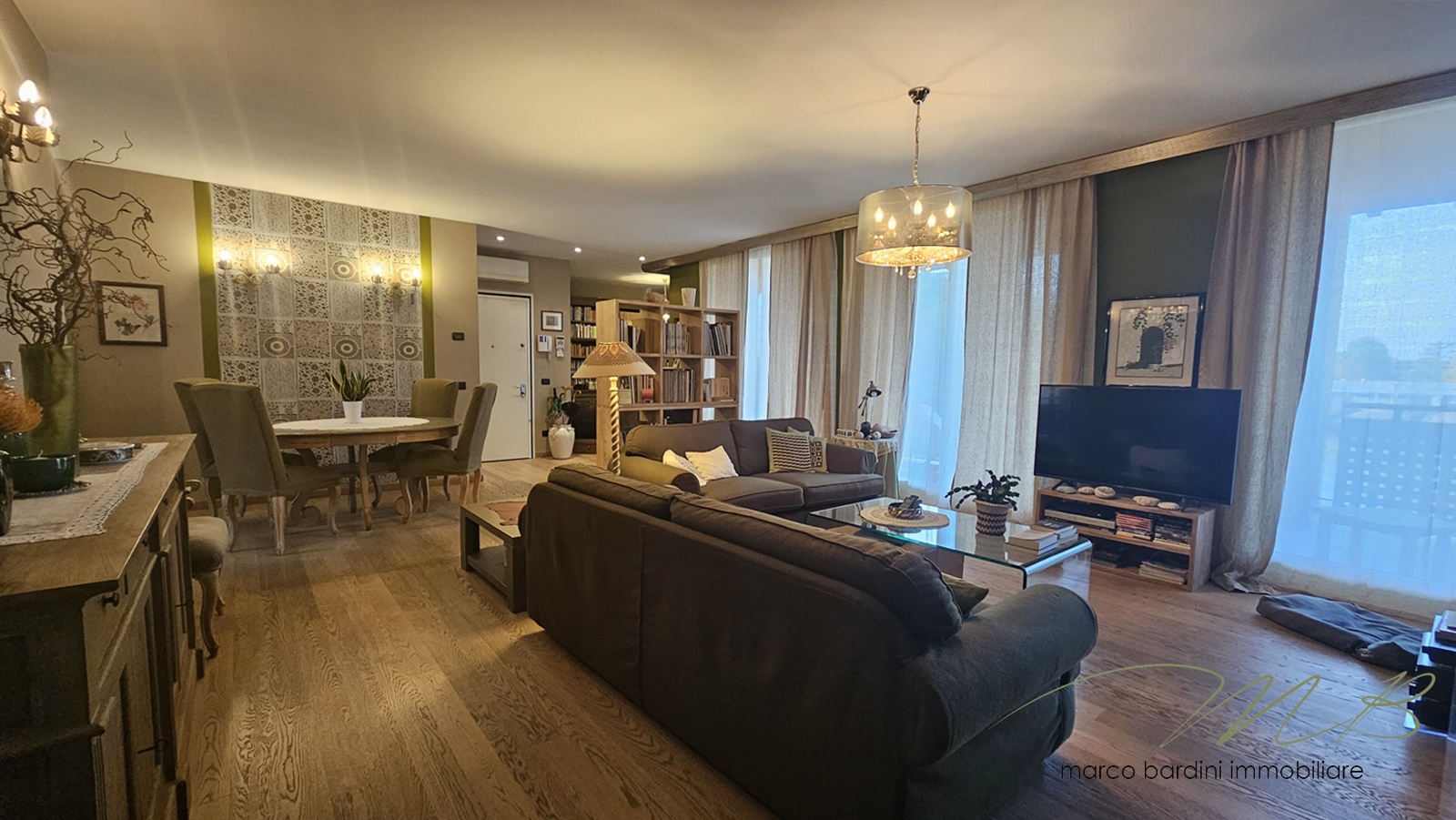 Gli interni si distinguono per le ampie dimensioni e per l’elevata qualità delle finiture: ingresso su ampio e luminoso soggiorno, che si estende verso una loggia coperta di 25 Mq, perfetta per cene all’aperto o momenti di relax.