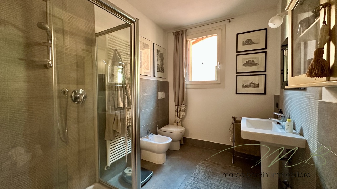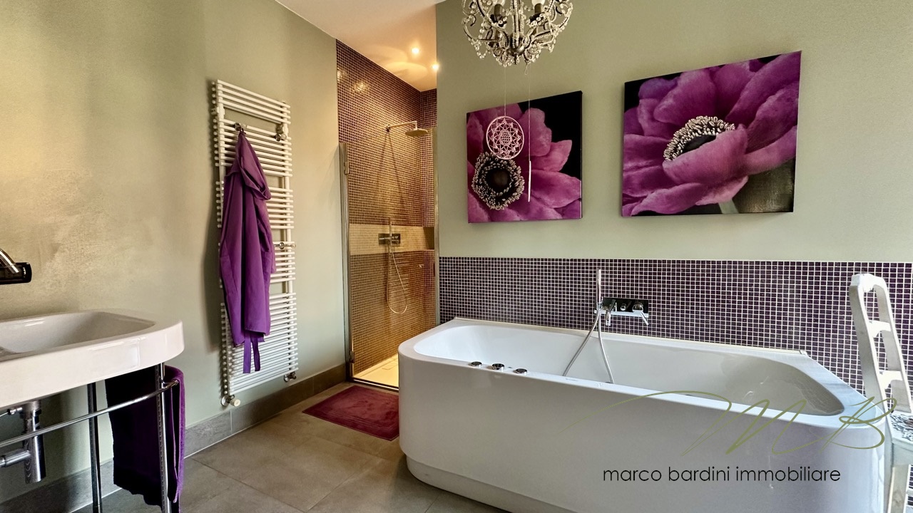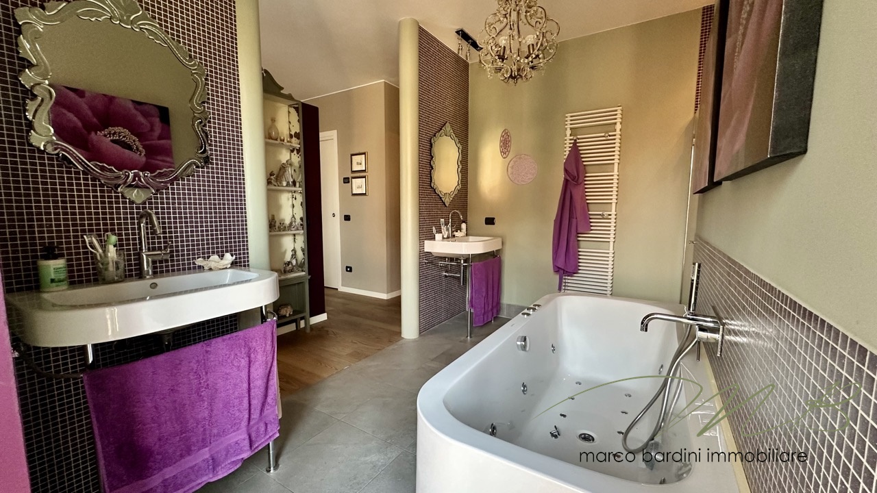 Un disimpegno porta alla zona notte, composta da una camera da letto, un comodo bagno e una zona lavanderia. La camera padronale, ampia e raffinata, è arricchita da una cabina armadio e da un bagno privato con vasca idromassaggio, offrendo un’esperienza di comfort esclusiva.