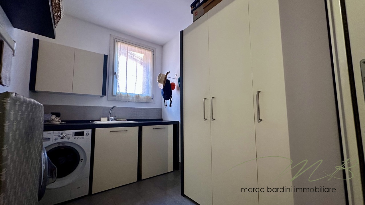 La proprietà comprende una cantina e un garage doppio in larghezza. La palazzina, oltre all’ascensore, dispone di una curata area verde condominiale con piccolo parco giochi, ideale per famiglie.
